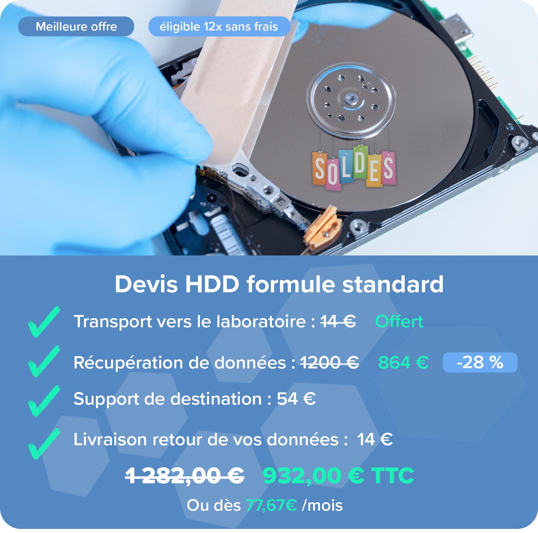 Notre laboratoire peut repondre aux situations les plus extremes en mobilisant une cellule d’urgence disponible 7j/7 et 24h/24, nuit, week-end et jours fériés. Prise en charge immédiate d’un disque dur en panne. La cellule d’urgence peut traiter les pertes de données sur disque dur mais également sur disque SSD, serveur, NAS, et RAID, clé USB, carte mémoire et smartphone la nuit, week-ends et jours fériés.